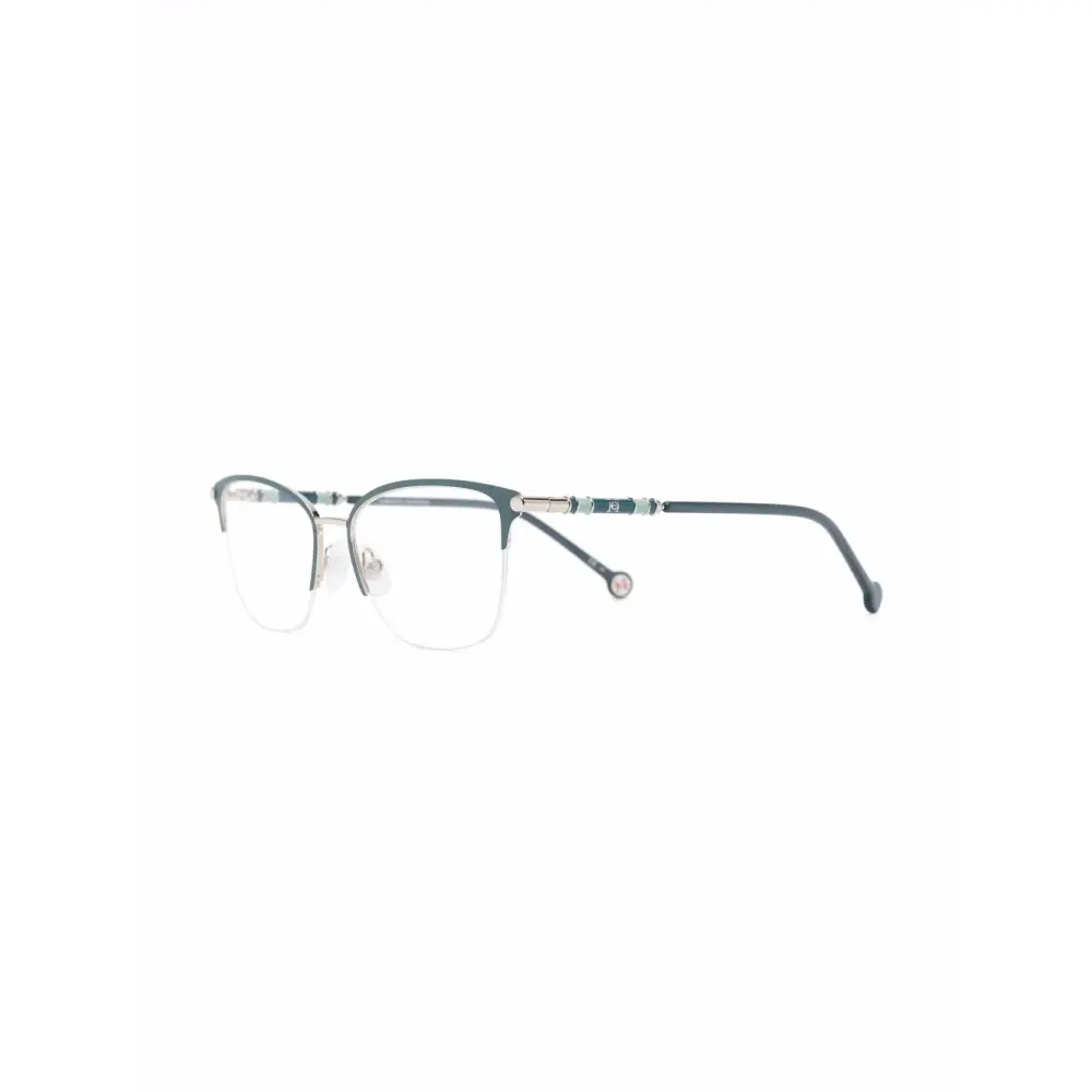 Квадратная оправа, прозрачные линзы, серебристая фурнитура, защитная пленка, носоупоры, логотип на дужке и дужки с закругленными концами. Цвет: синий. Обратите внимание, что на FARFETCH продаются оправы с линзами без диоптрий. В комплект входит защитный чехол для очков.