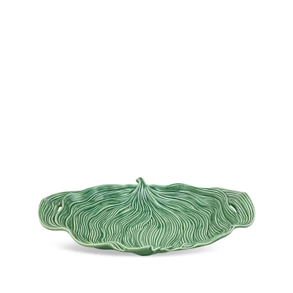 Цвет зеленой спаржи, глазурованное покрытие, полоски и заостренный кончик.