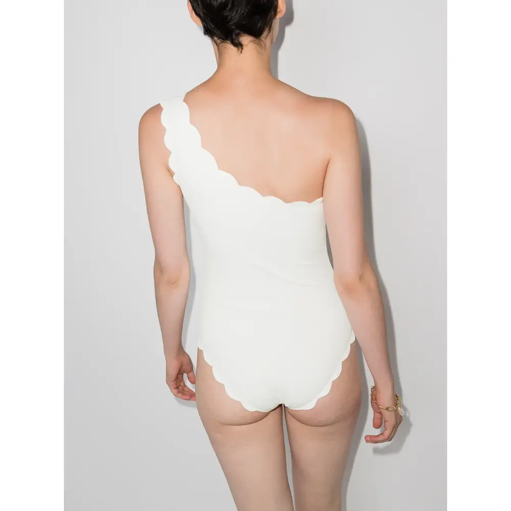 Края с фестонами, модель на одном плече и эластичная модель. Пожалуйста, примеряйте купальники и пляжные шорты только поверх собственного белья.