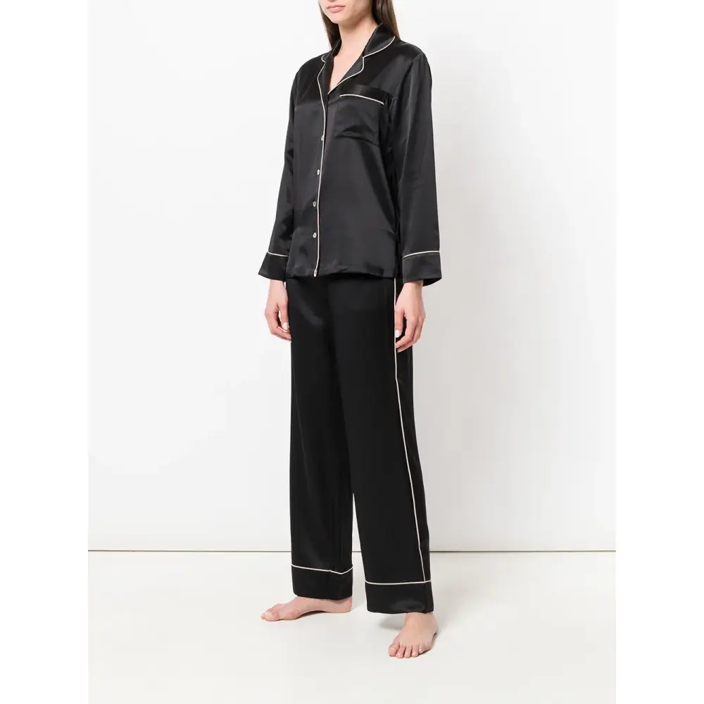 Черная шелковая пижама с контрастной окантовкой от Fleur Of England.