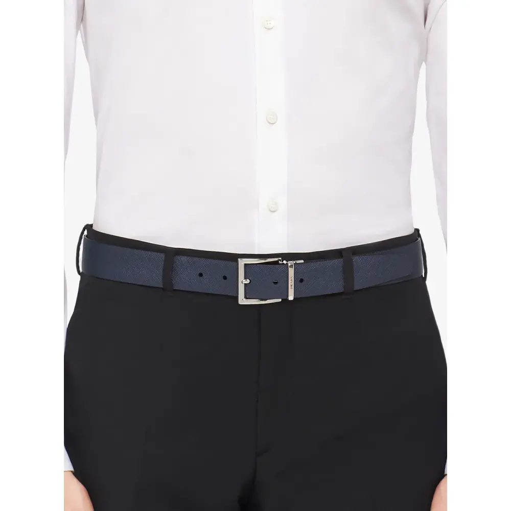 Двусторонний ремень от Prada (Прада). Гравировка логотипа.