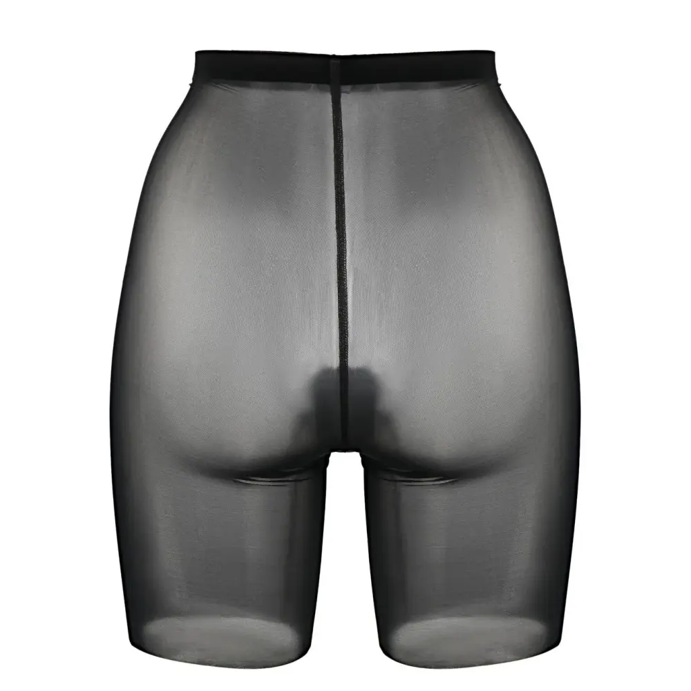 Черный, эластичный материал, вставка из тюля, завышенная талия и высокий вырез. Эту вещь можно примерить, но только поверх собственного белья.