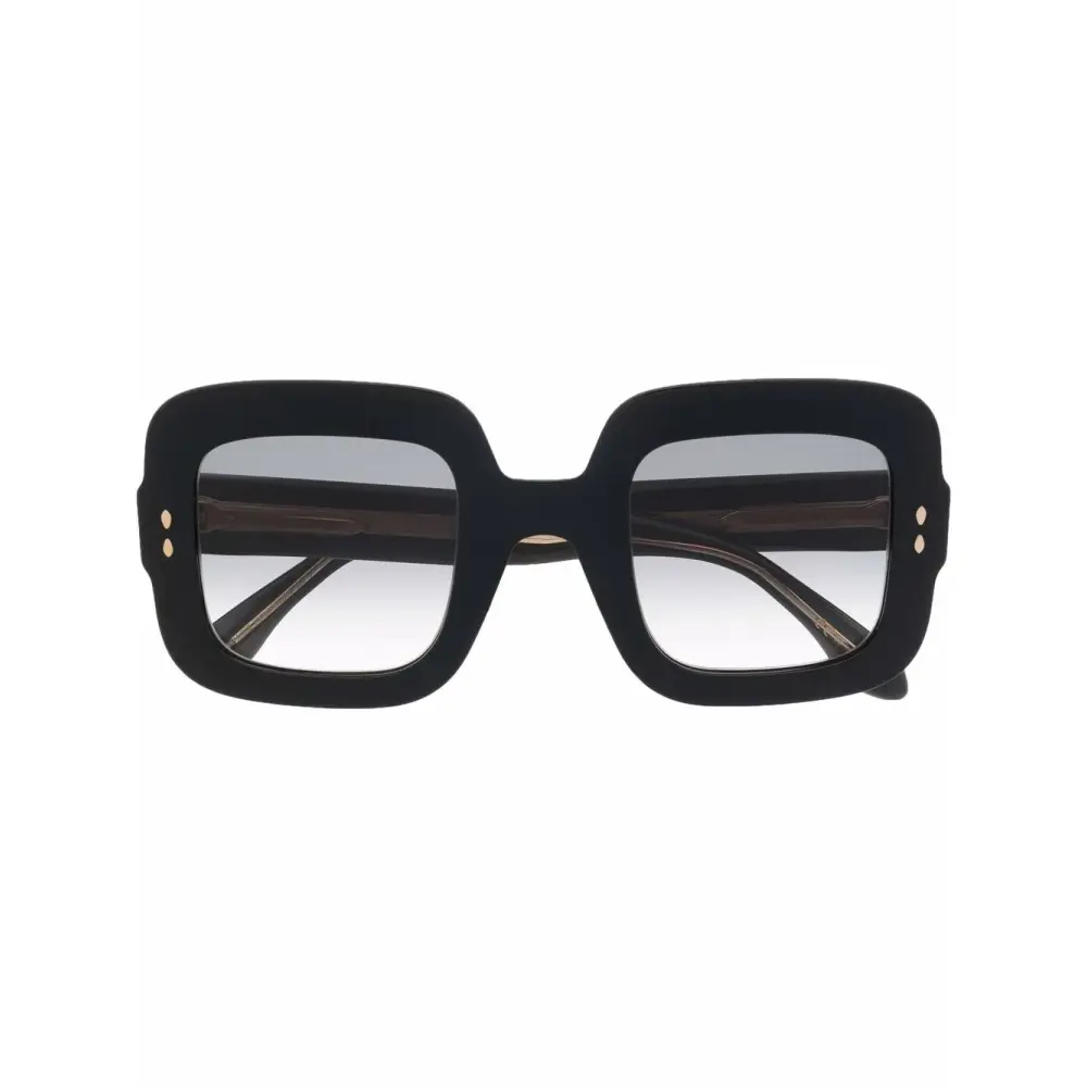 Затемненные линзы, градиентные линзы, квадратная оправа, прямые дужки и дужки с закругленными концами. Цвет: черный.