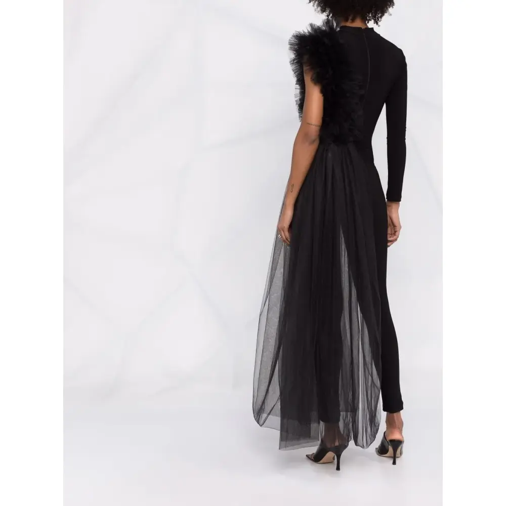 черный асимметричная форма вставки с оборками эластичная модель высокий воротник застежка на молнии сзади один рукав
