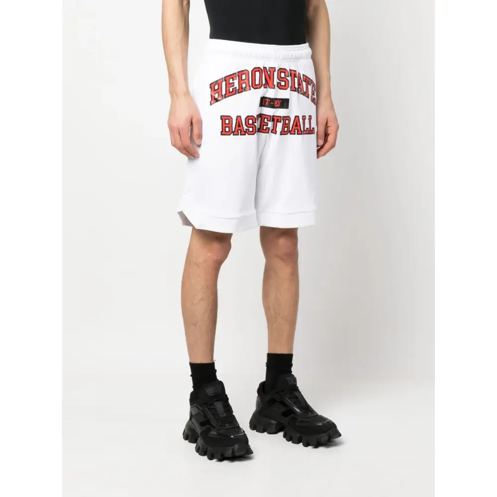 Белый/черный, красный, логотип спереди, нашивка с логотипом сзади, перфорированная модель, эластичный пояс, два прорезных кармана по бокам и длина по колено.