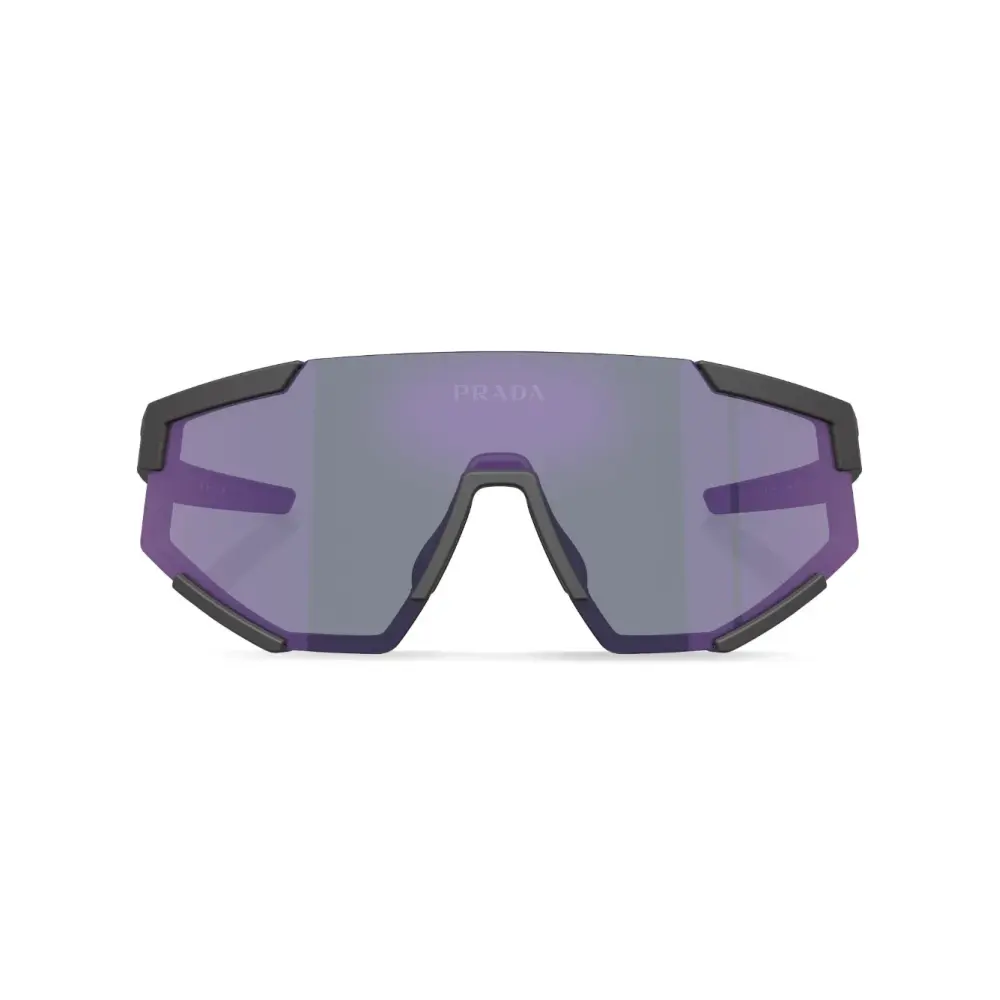 Черный, оправа «пилот», фиолетовые линзы и прямые дужки. В комплект входит защитный чехол для очков.
