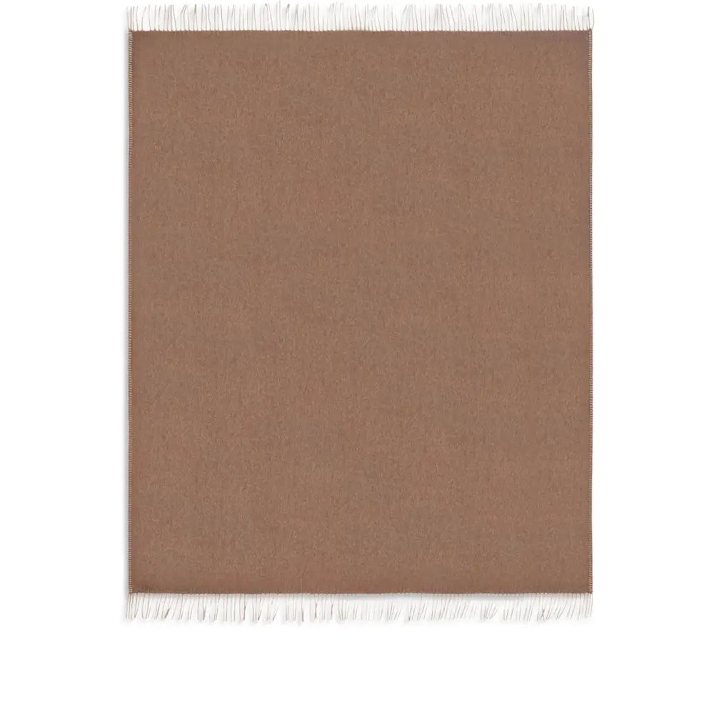Карамельный, кашемир, трикотажный материал, тонкая вязка, матовое покрытие, бахрома и прямоугольная форма.