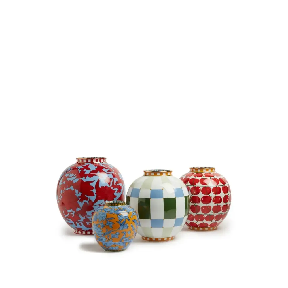 Бордовый, фарфор, знаковый принт Cherry, контрастная отделка и золотистая отделка.