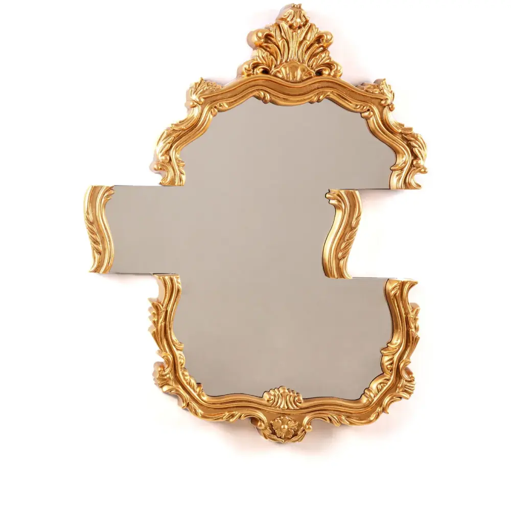 Золотистый, стекло, асимметричная форма и фурнитура с состаренным эффектом.