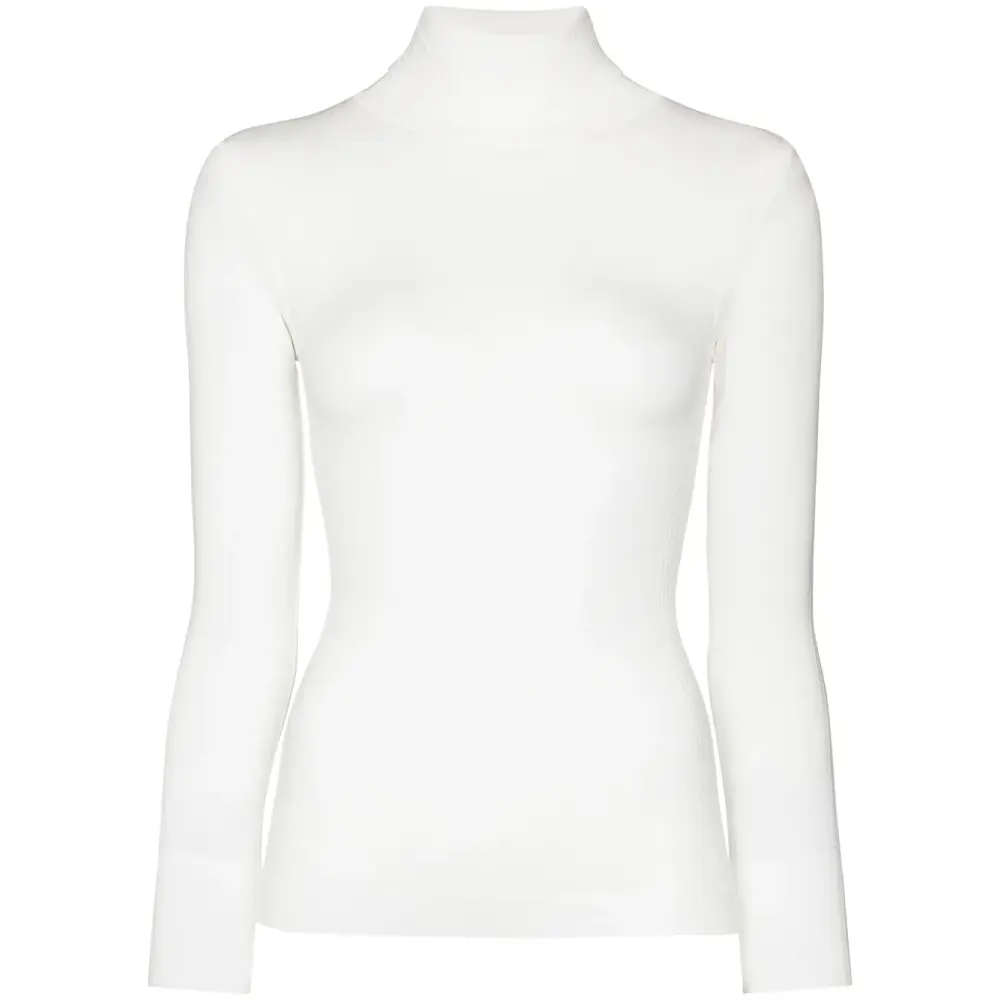 Высокое горлышко с заворотом и длинные рукава. Цвет: белый.