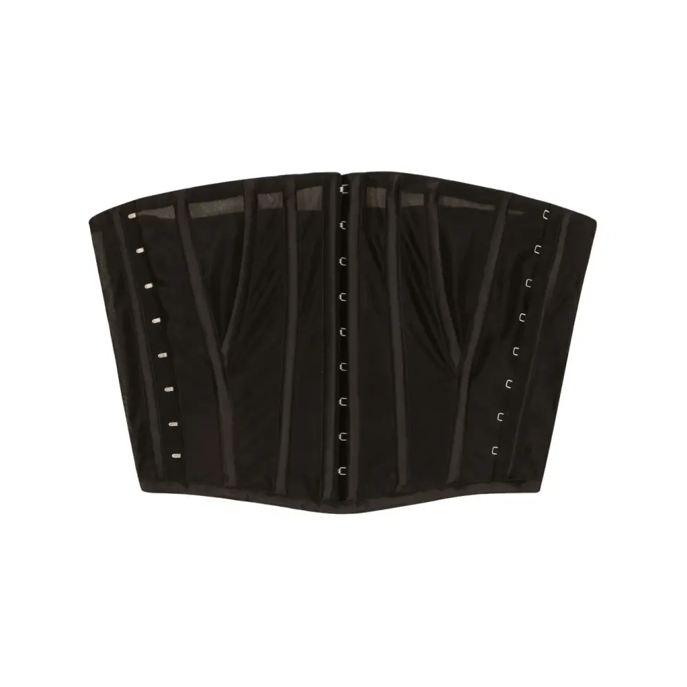 Черный, эластичный шелк, полупрозрачный дизайн, проклеенные швы, застежка на крючок и без бретелей.