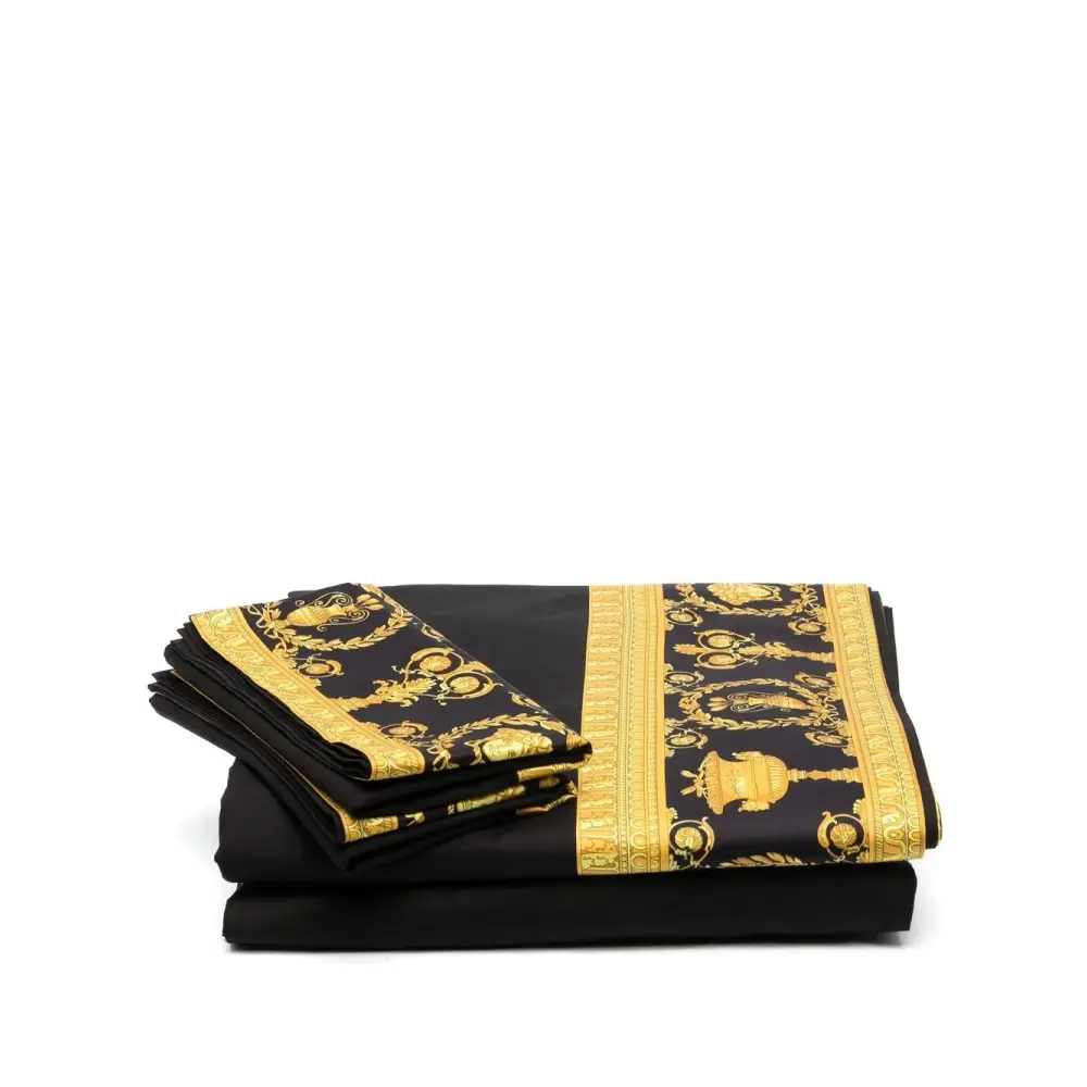 Черный, золотистый, хлопок, узор в стиле барокко и набор из четырех предметов.