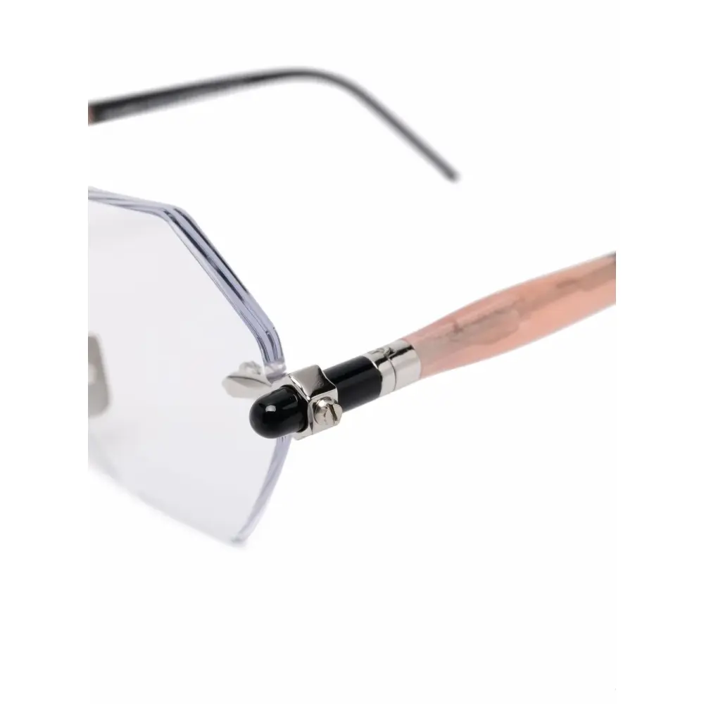 черный ацетат круглая оправа серебристая фурнитура носоупоры В комплект входит защитный чехол для очков. Обратите внимание, что на FARFETCH продаются оправы с линзами без диоптрий.