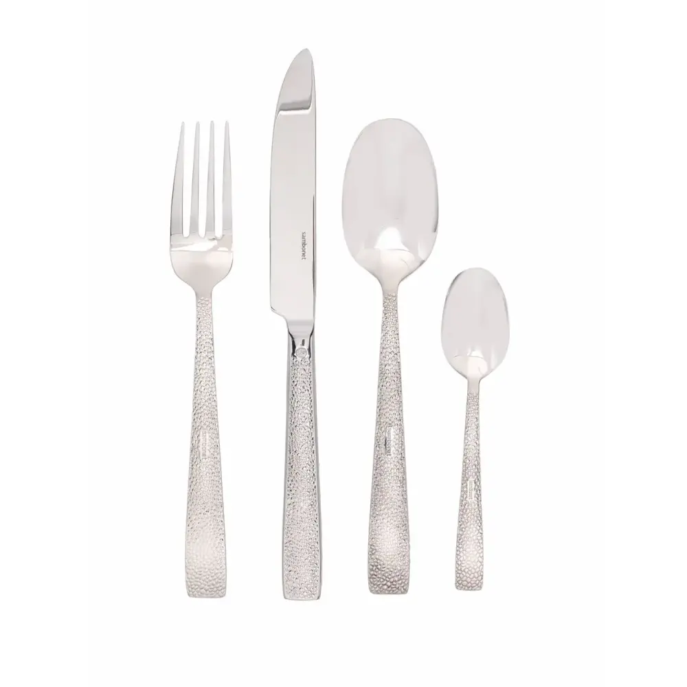цвет: серебристый нержавеющая сталь фактурная отделка набор из 24 предметов: 6 столовых ложек, 6 вилок, 6 ножей, 6 чайных ложек