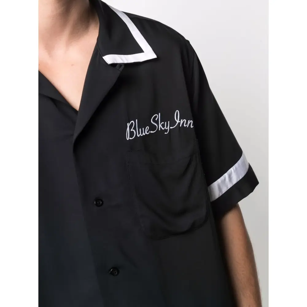 Контрастная отделка, вышитый логотип на груди, застежка на пуговицах спереди, нагрудный накладной карман и короткие рукава.