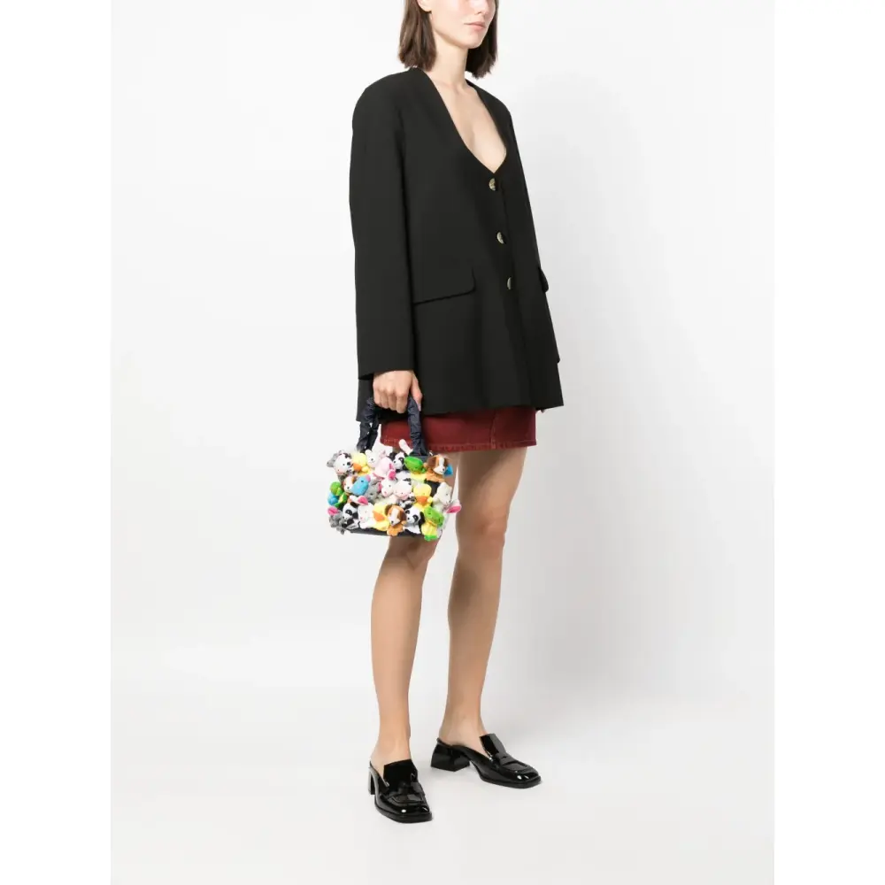Разноцветный, деним, аппликация, детали с оборками, дизайн с открытым верхом, магнитная застежка, съемный ремень на плечо, две верхние ручки, основное отделение, нашивка с логотипом внутри и внутренний прорезной карман.