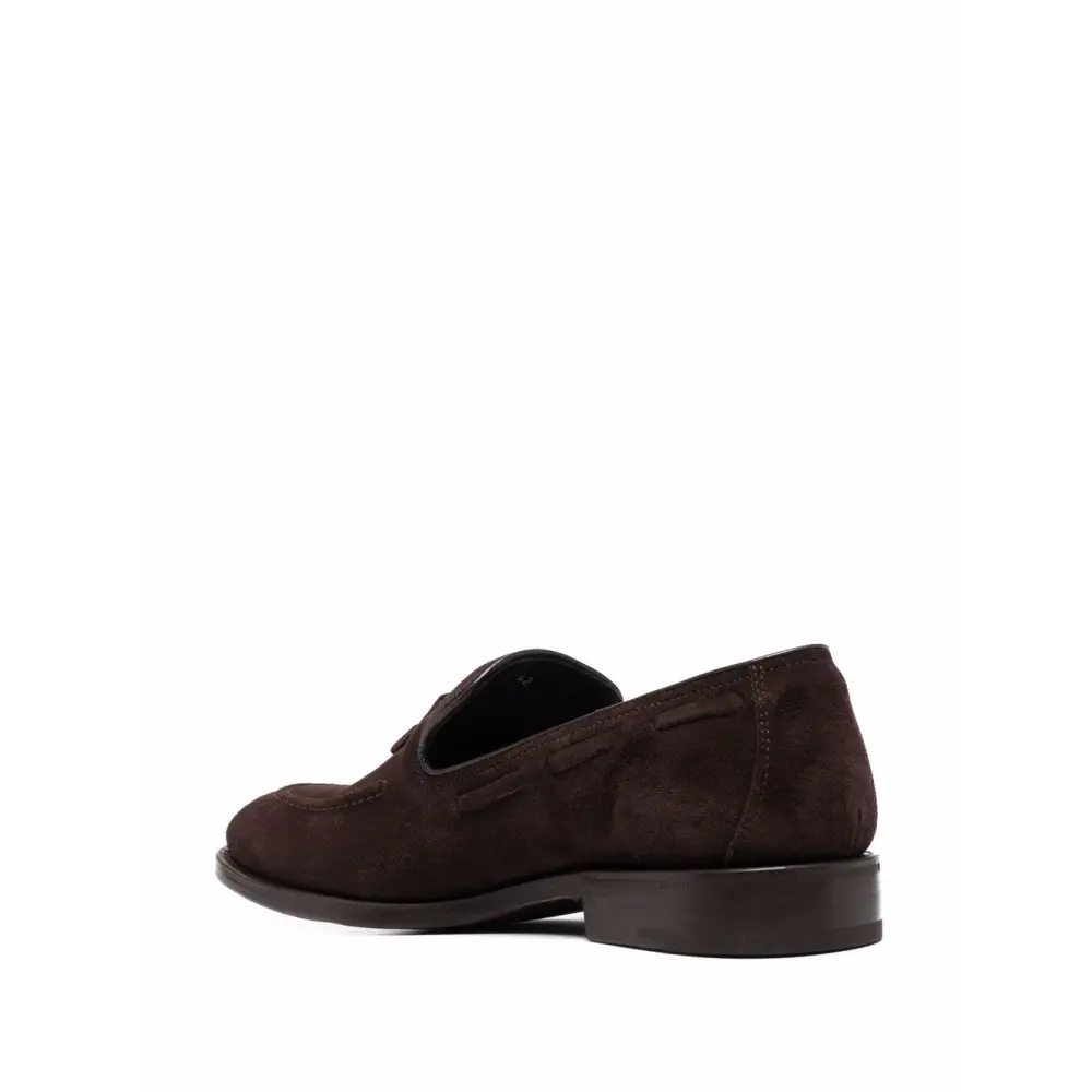 Декоративные кисточки, модель без застежки, миндалевидный носок, стелька с логотипом и кожаная подошва.