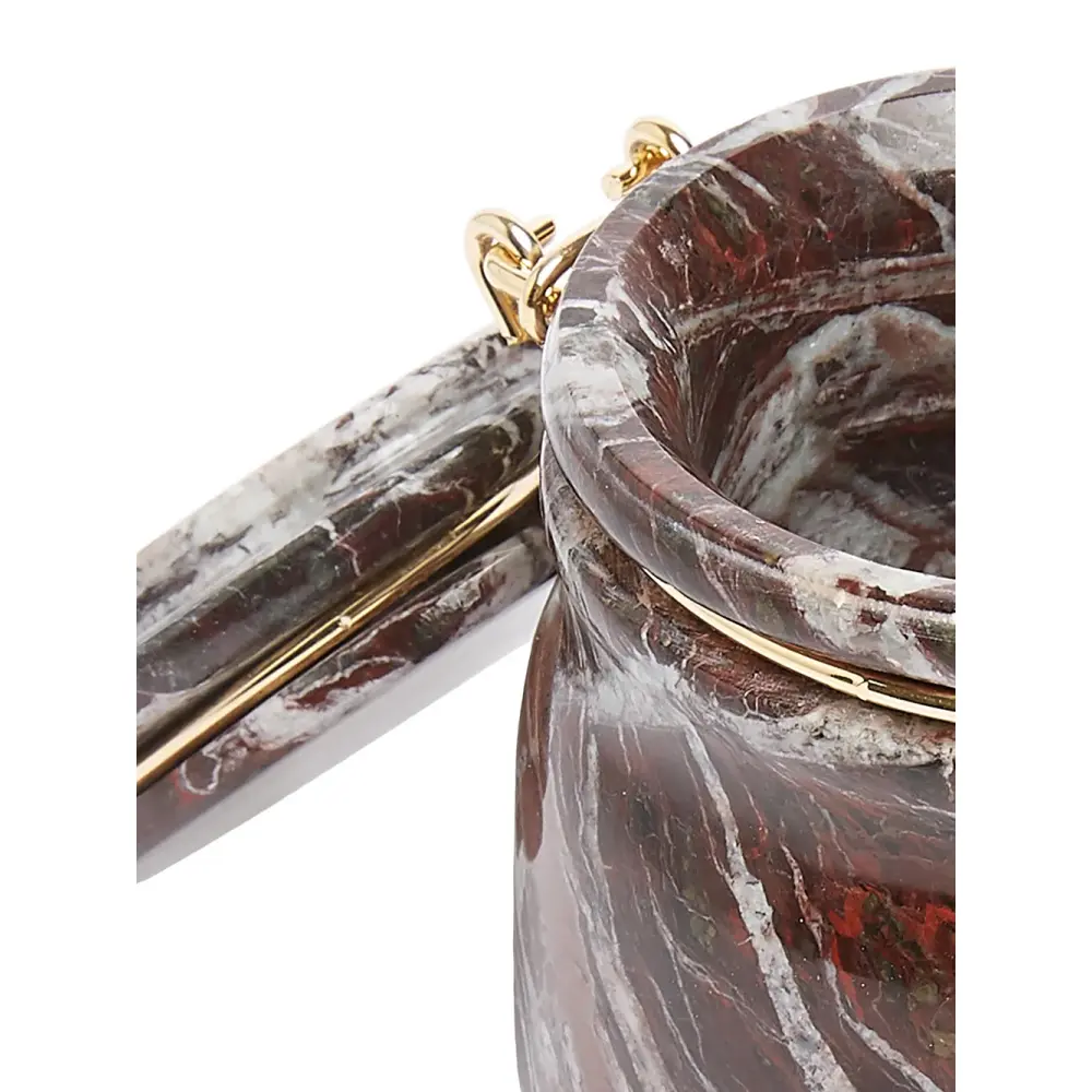 Закругленная форма, золотистая фурнитура и застежка с поворачивающимся замком.
