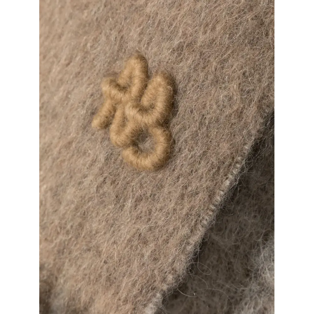 Коричневый, смесовая шерсть альпаки, вышитый логотип спереди и края с бахромой.