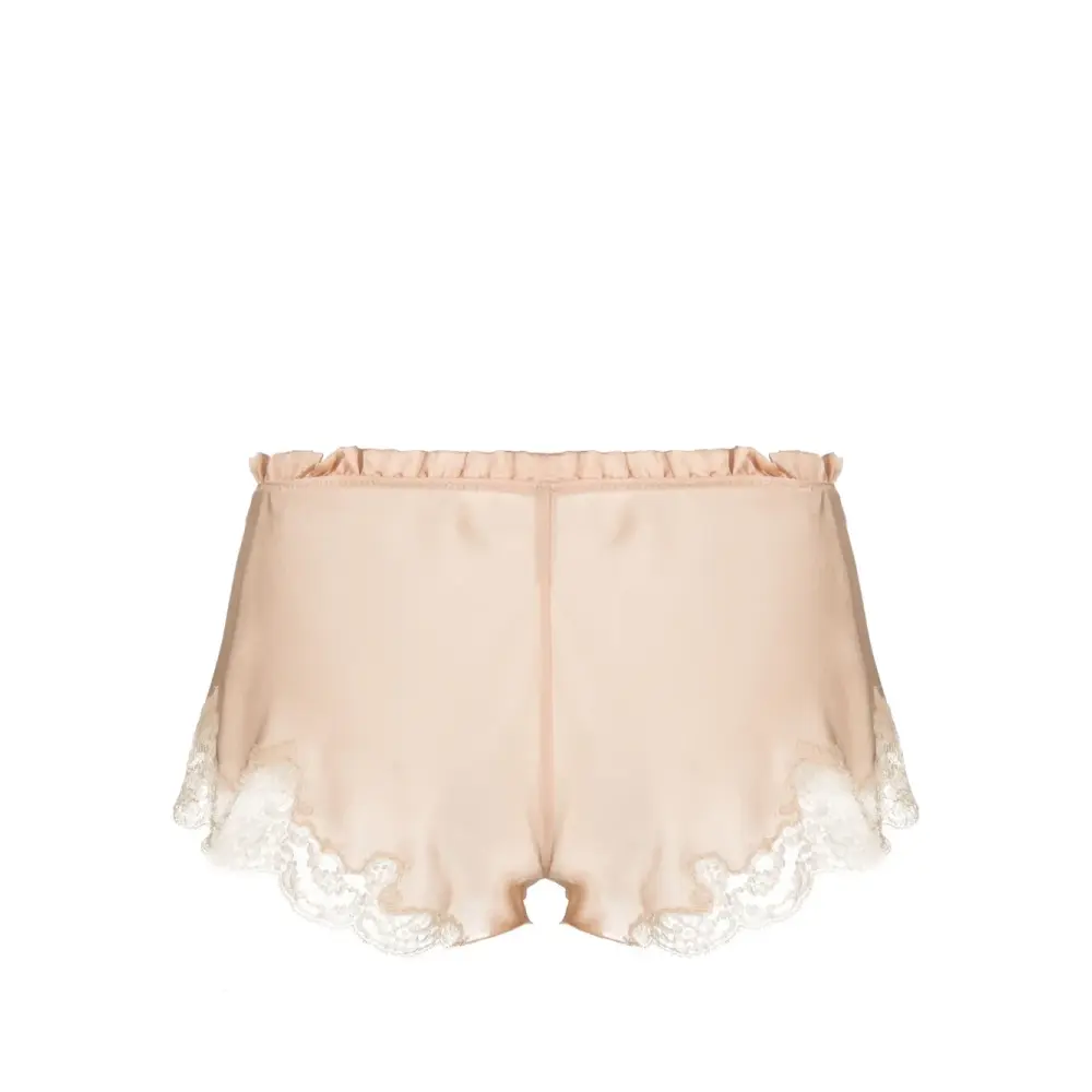Расцветка Blush Beige, шелк, сатиновая фактура, вставки из кружева, вставки с оборками, эластичный пояс и длина до бедер. Узнать больше о том, какие товары получают отметку «Ответственный выбор», можно из материала «Как мы оцениваем экологичность и этичность».
