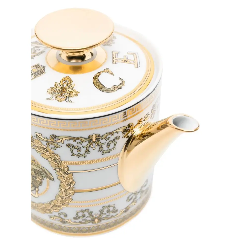 Золотистый, белый, керамика, узор Medusa Head, знаковый декор с логотипом Virtus и модель круглой формы.