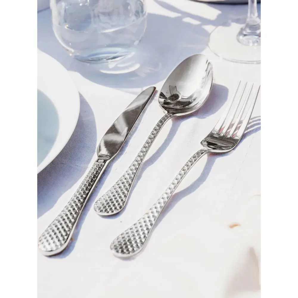 Серебристый, нержавеющая сталь, фактурная отделка, выгравированный логотип и подходит для мытья в посудомоечной машине.