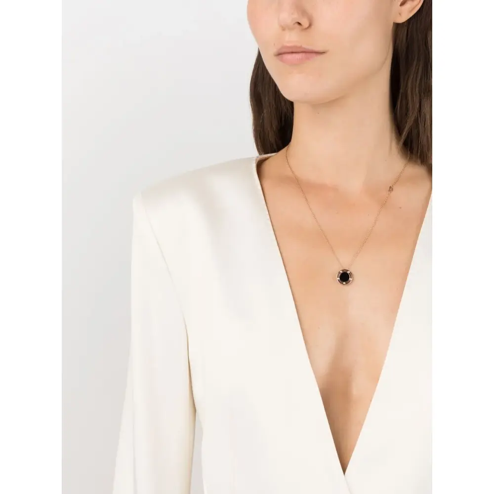 Оникс 100%, 18-каратное розовое золото 100%, Белый бриллиант 100%
