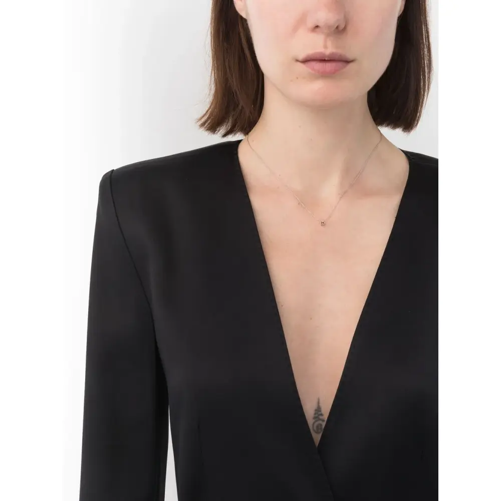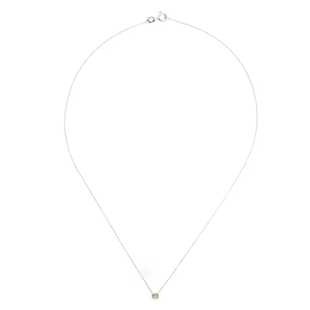 18-каратное белое золото, бриллиант, крапановая закрепка, тонкая цепочка и застежка на зажиме.