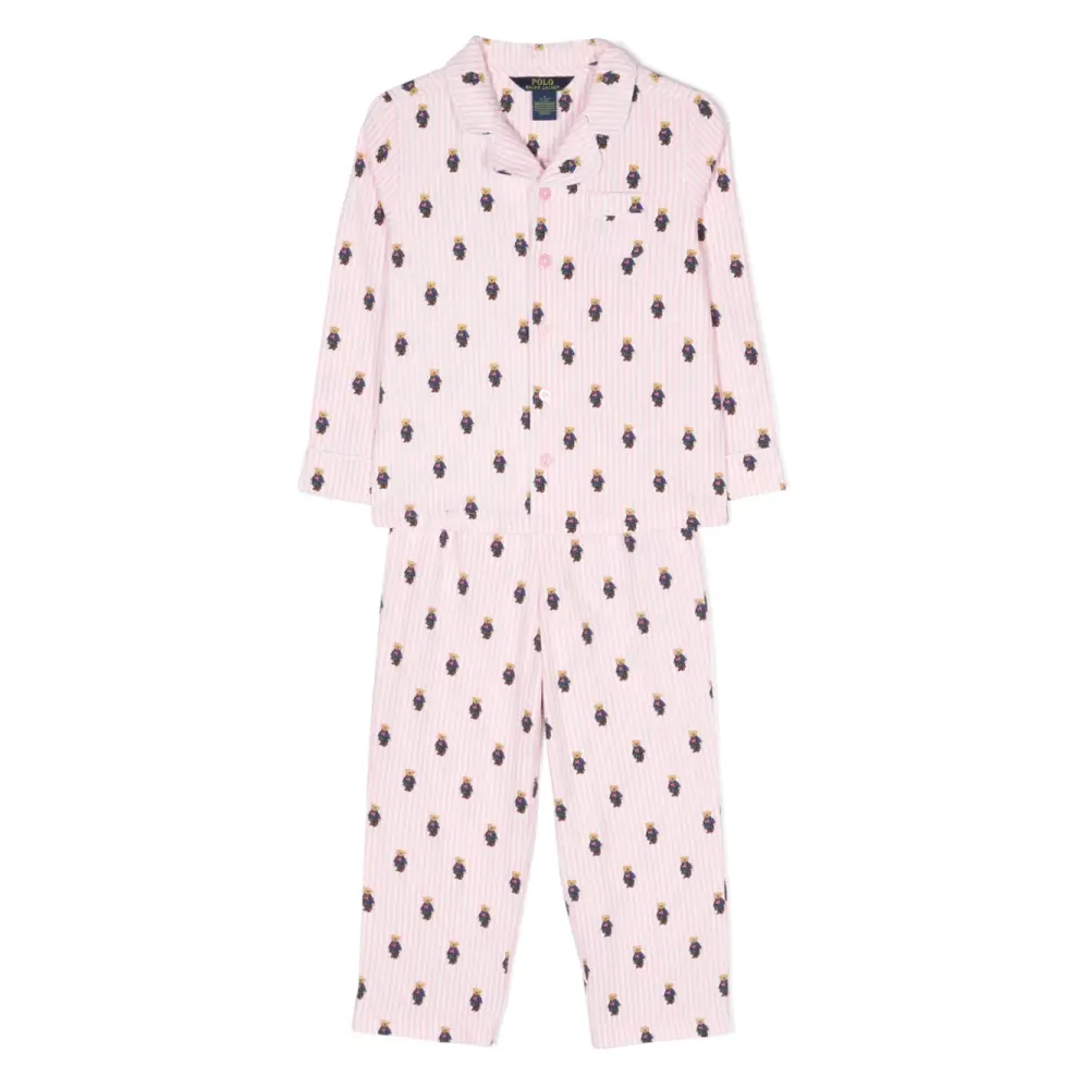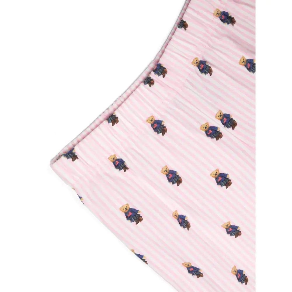 Узор в вертикальную полоску, принт Polo Bear, зазубренный воротник, застежка на пуговицах спереди, нагрудный накладной карман, узор в вертикальную полоску, принт Polo Bear, эластичный пояс и прямой крой.