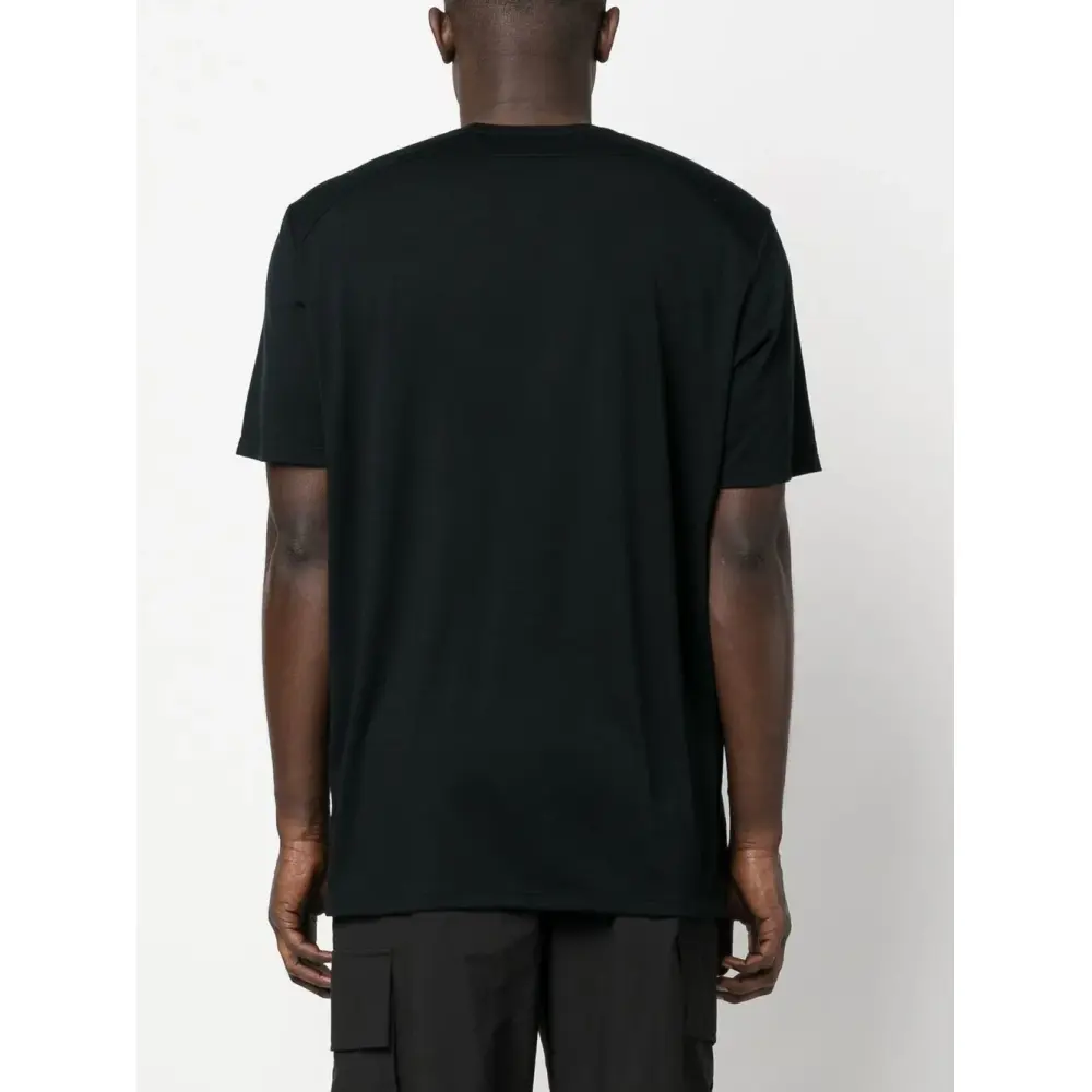 Черный, смесовая шерсть, круглый вырез, короткие рукава и прямой подол.