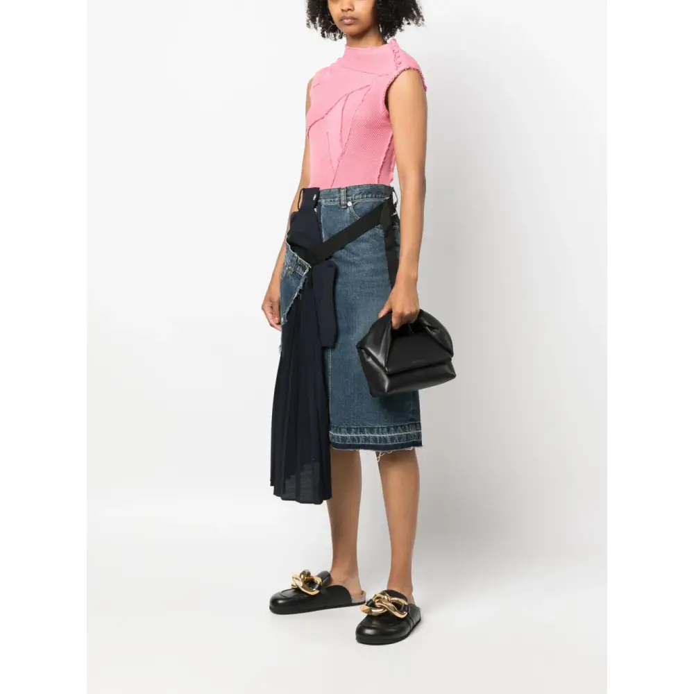 Черный, телячья кожа, тисненый логотип спереди, перекрученная верхняя ручка, съемный цепочный ремень на плечо, откидной клапан на магните и основное отделение.