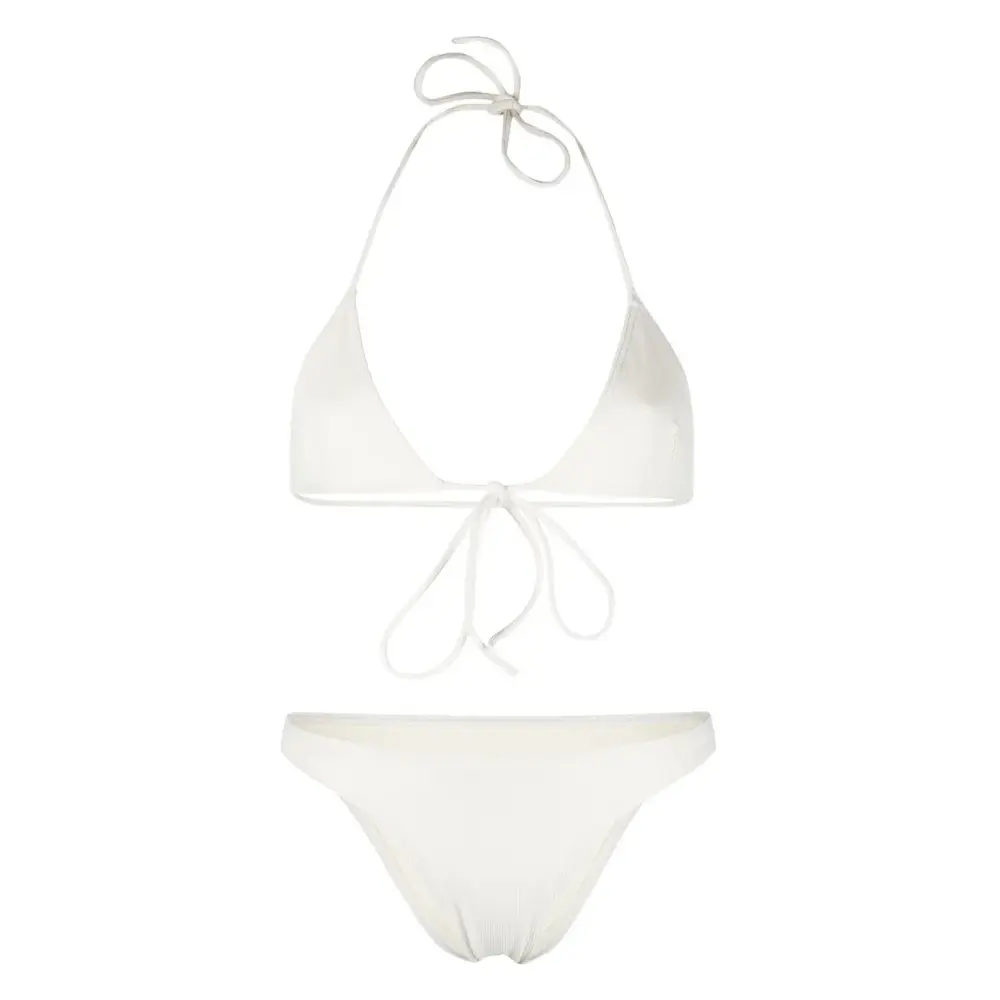 Эластичный материал, завязки спереди, завязки вокруг шеи, эластичный пояс и классические плавки бикини. Пожалуйста, примеряйте купальники и пляжные шорты только поверх собственного белья.