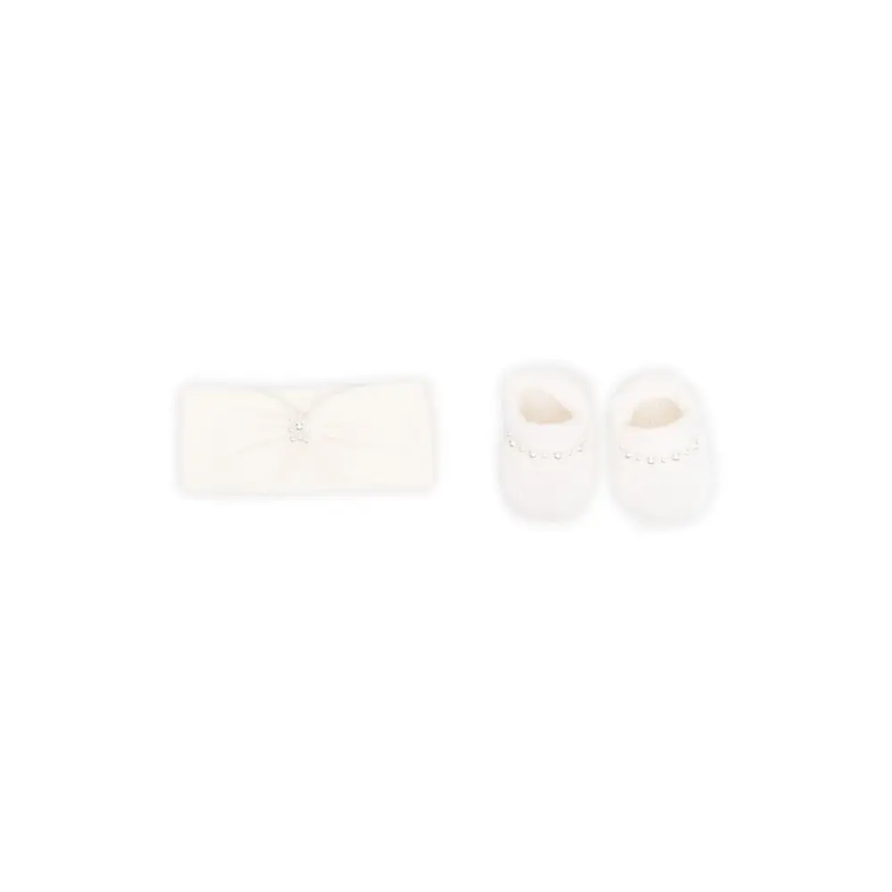 Цвет слоновой кости, смесовая необработанная шерсть, тонкая вязка, декор из искусственного жемчуга, модель без застежки и набор из двух предметов.