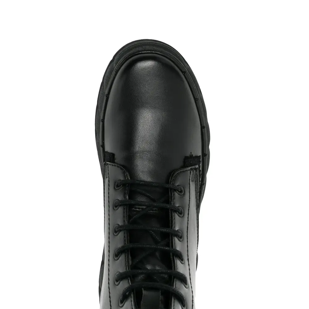 Закругленный носок, шнуровка спереди, петля для подтягивания сзади и массивная резиновая подошва. Цвет: черный.
