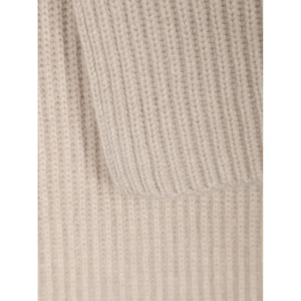 Расцветка Sesame Beige, кашемир, трикотаж в рубчик, прямой подол и несколько оборотов.