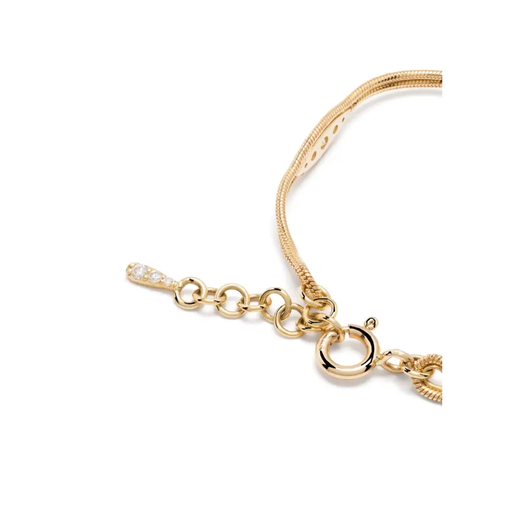 18-каратное желтое золото, бриллиантовое паве, гравировка, регулируемая длина цепочки, шпрингельный замок и глянцевая фактура. Украшения могут потерять свой блеск из-за ежедневного использования и влияния внешних факторов. Чтобы этого избежать, используйте неабразивные чистящие средства для ювелирных украшений.