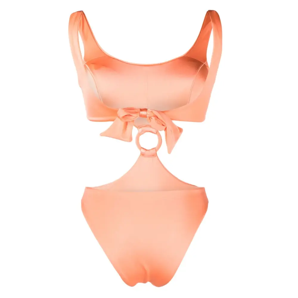 Оранжевый, вырезные детали, металлические кольца, U-образный вырез, застежка на завязке сзади и без рукавов. Пожалуйста, примеряйте купальники и пляжные шорты только поверх собственного белья.