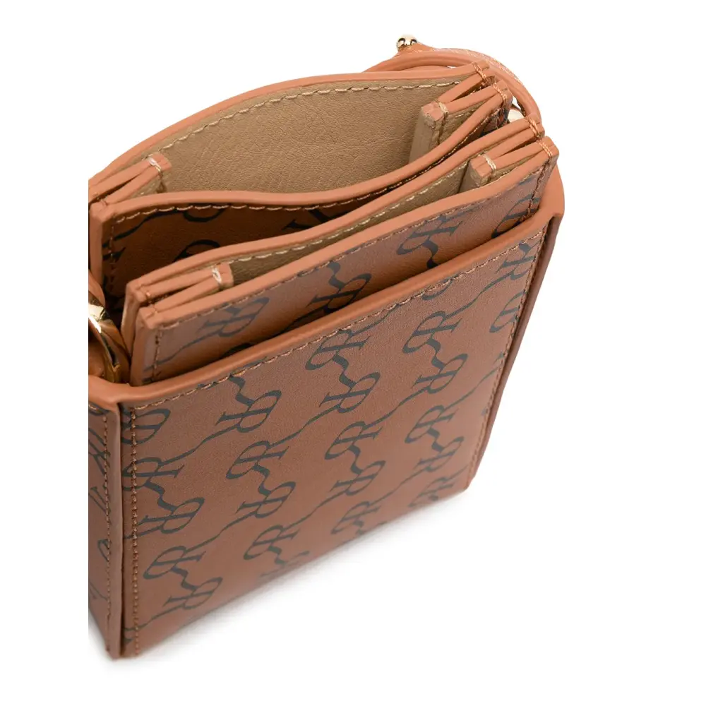 Узор с изображением монограммы, прямоугольная форма и регулируемый ремень на плечо.