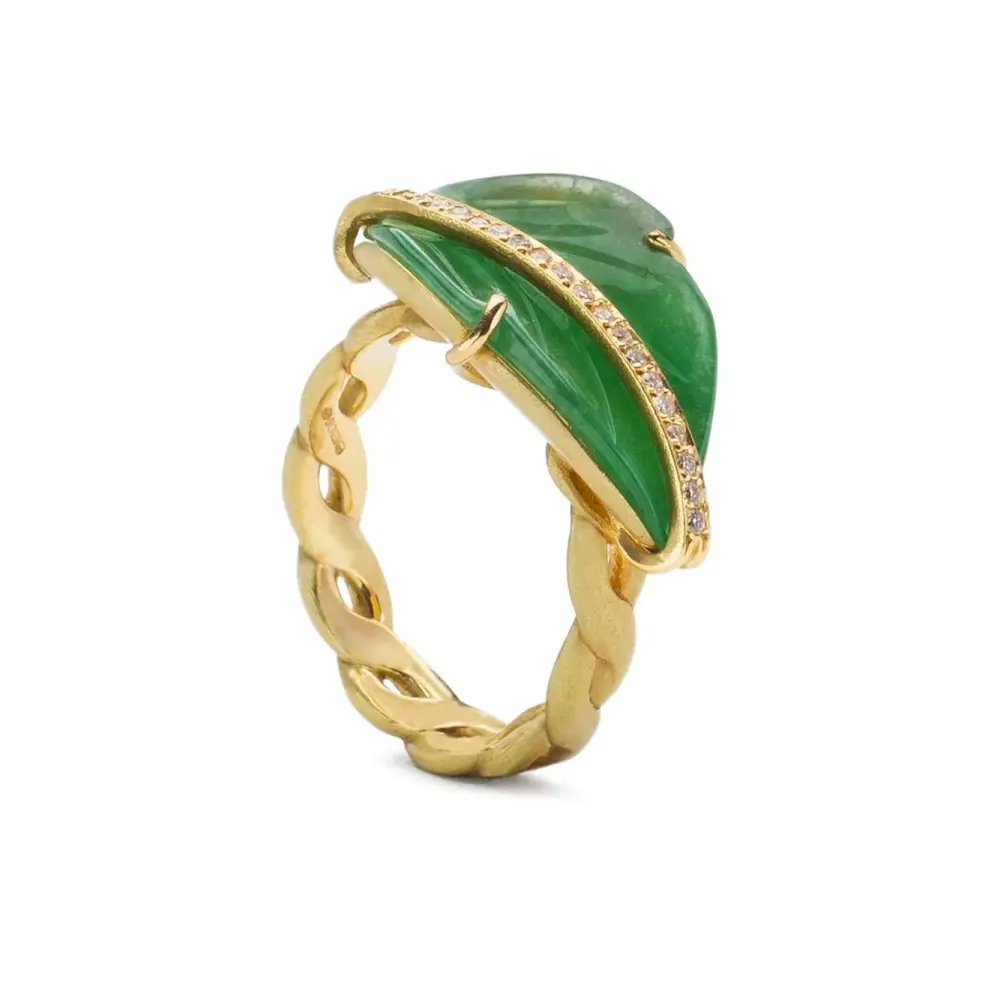 18kt yellow gold Leaf jade and diamond ring