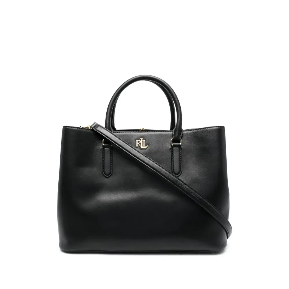 Черный, телячья кожа, металлический логотип, круглые ручки, регулируемые лямки и застежка на молнии сверху.