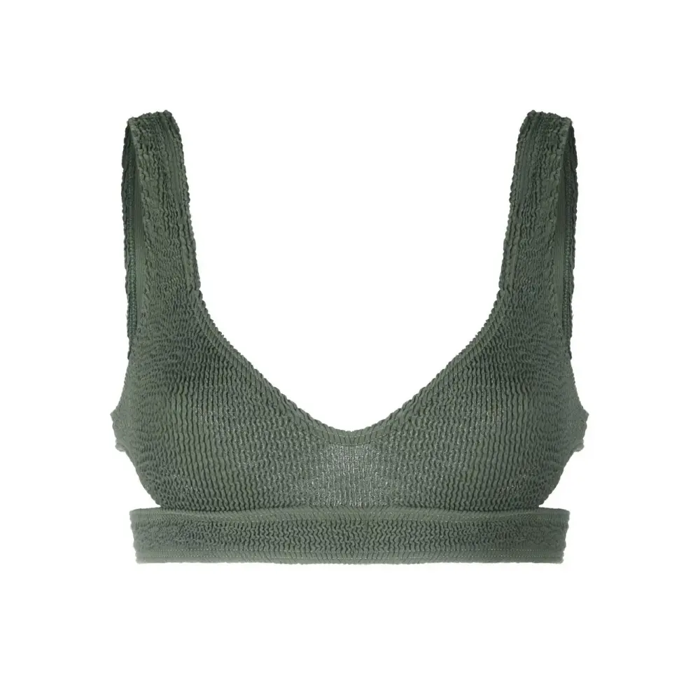 Хаки, сирсакер, вырезные детали, широкие бретели и U-образный вырез на спине. Пожалуйста, примеряйте купальники и пляжные шорты только поверх собственного белья. Ответственный выбор: Этот товар как минимум на 50% состоит из переработанных или повторно использованных материалов.