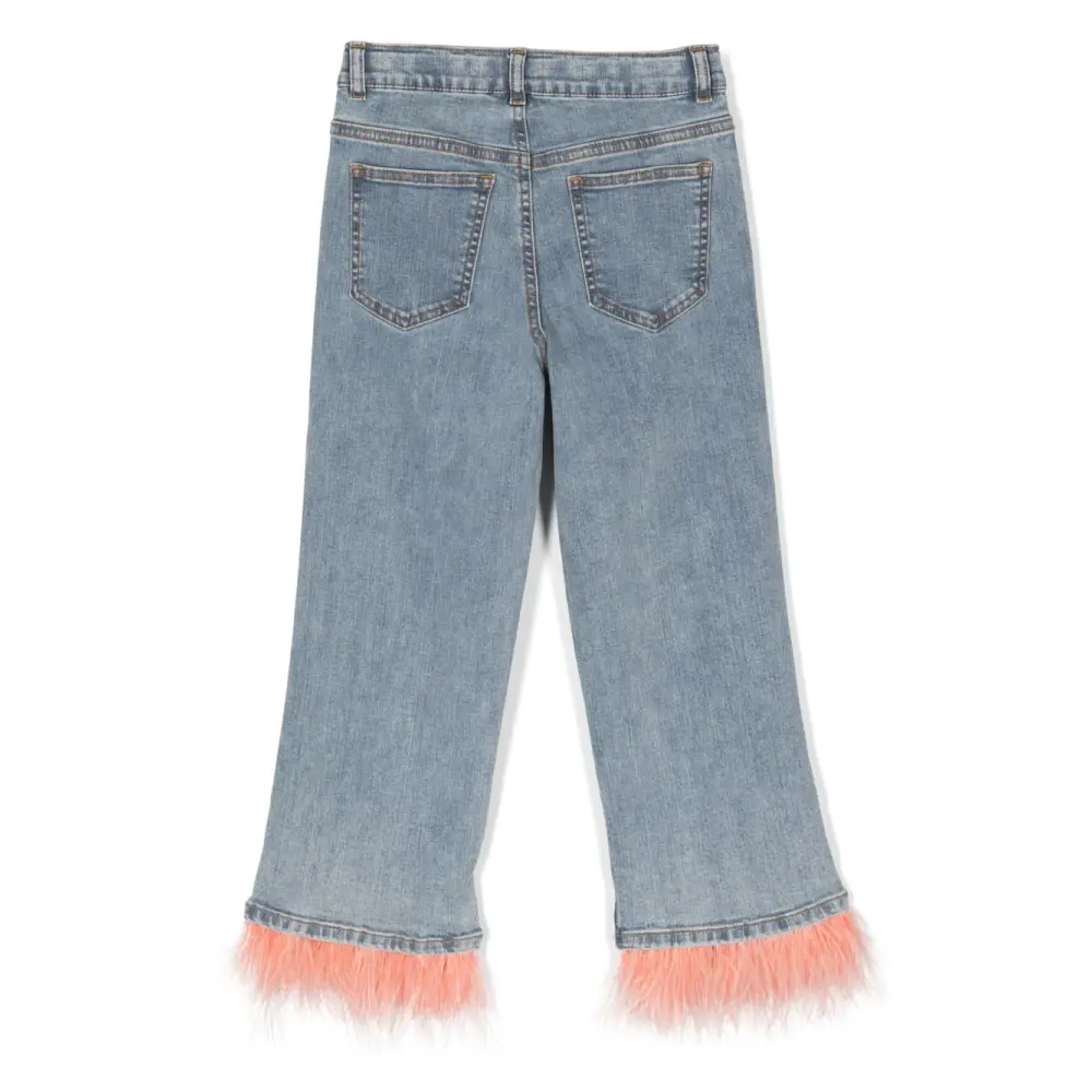 Синий, органический хлопок, деним, края с бахромой, петли для ремня, нашивка с логотипом внутри, средняя посадка, застежка на молнии и пуговице спереди и пять карманов. Узнать больше о том, какие товары получают отметку «Ответственный выбор», можно из материала «Как мы оцениваем экологичность и этичность».