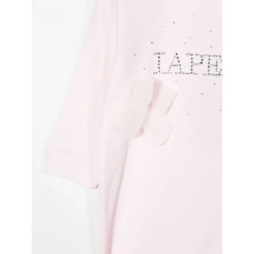 Розовый, хлопок, логотип, декор из кристаллов, бант, длинные рукава, манишка и модель на запах.
