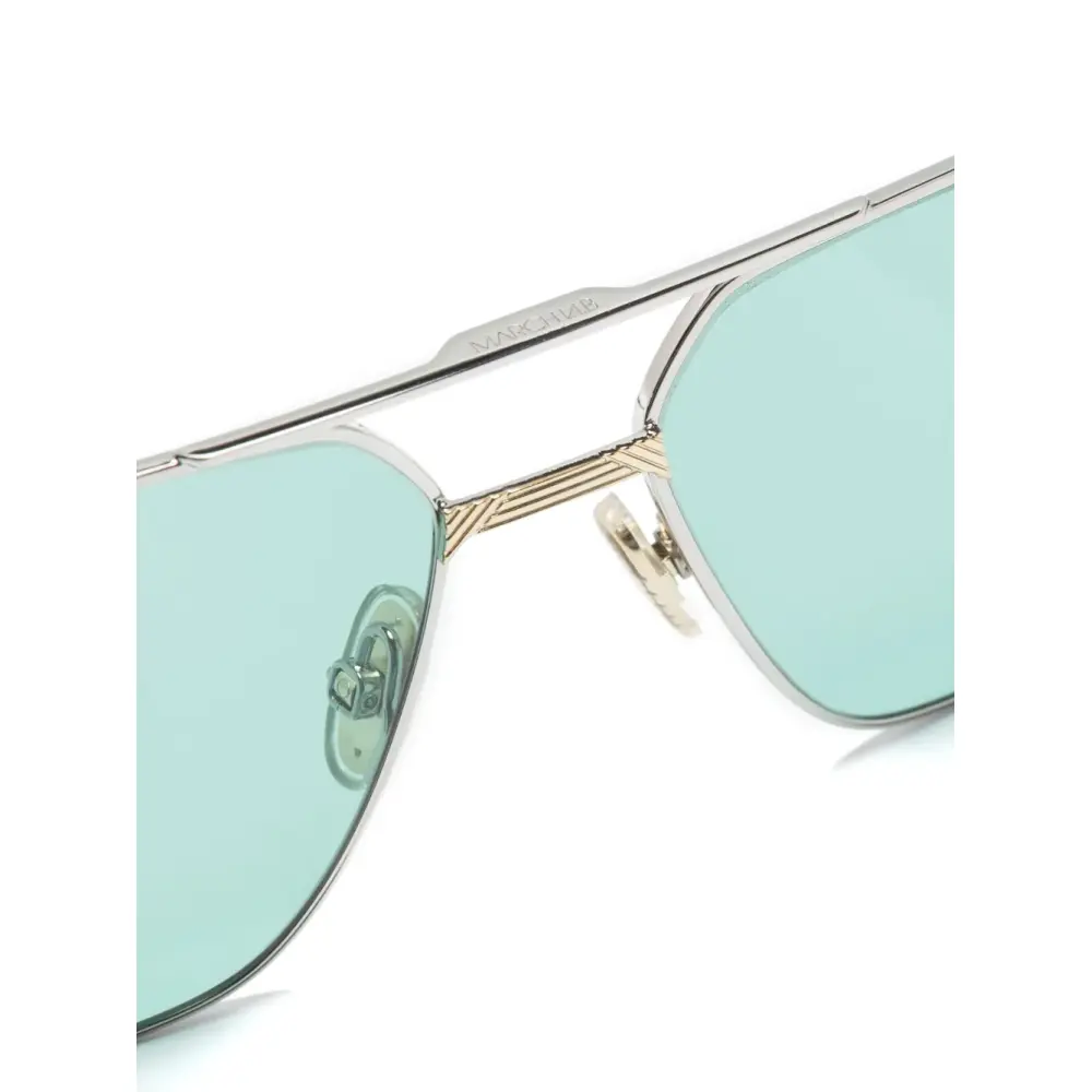 Серебристый, нержавеющая сталь, синие линзы, двойной мост, носоупоры, прямые дужки и дужки с закругленными концами. В комплект входит защитный чехол для очков.