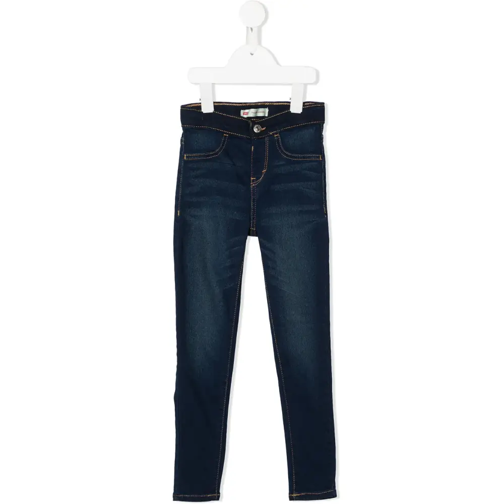 Эффект потертости, контрастная строчка, петли для ремня, застежка на молнии и пуговице спереди и классическая пятикарманная модель.