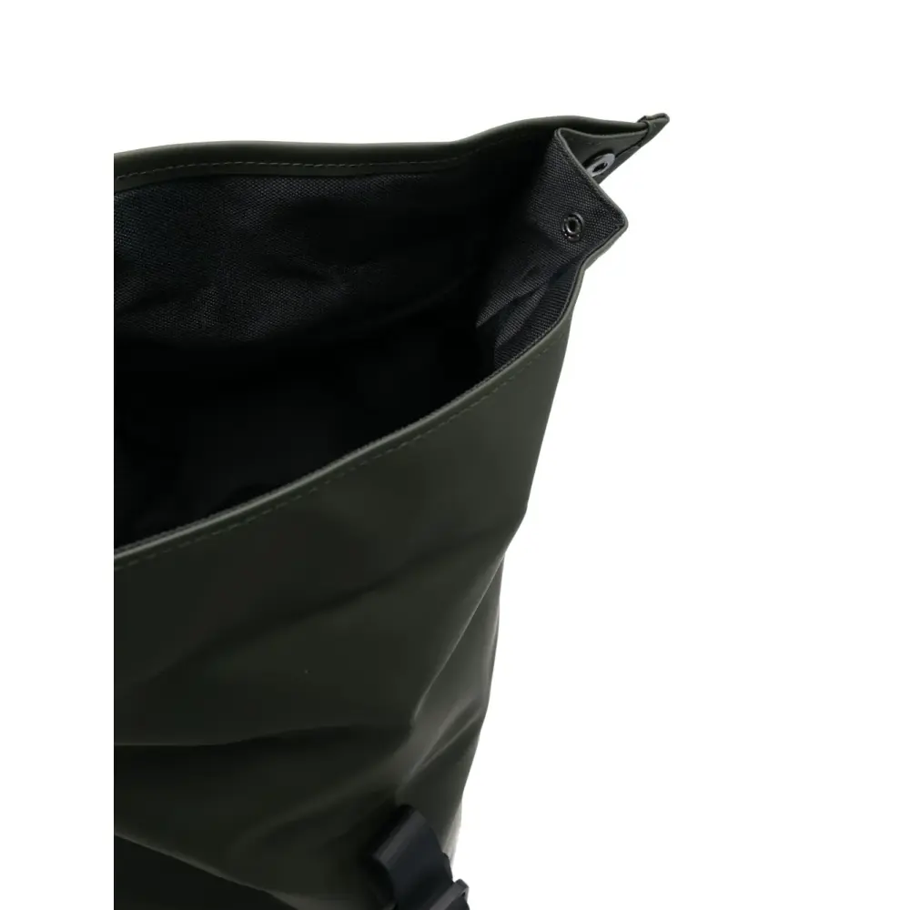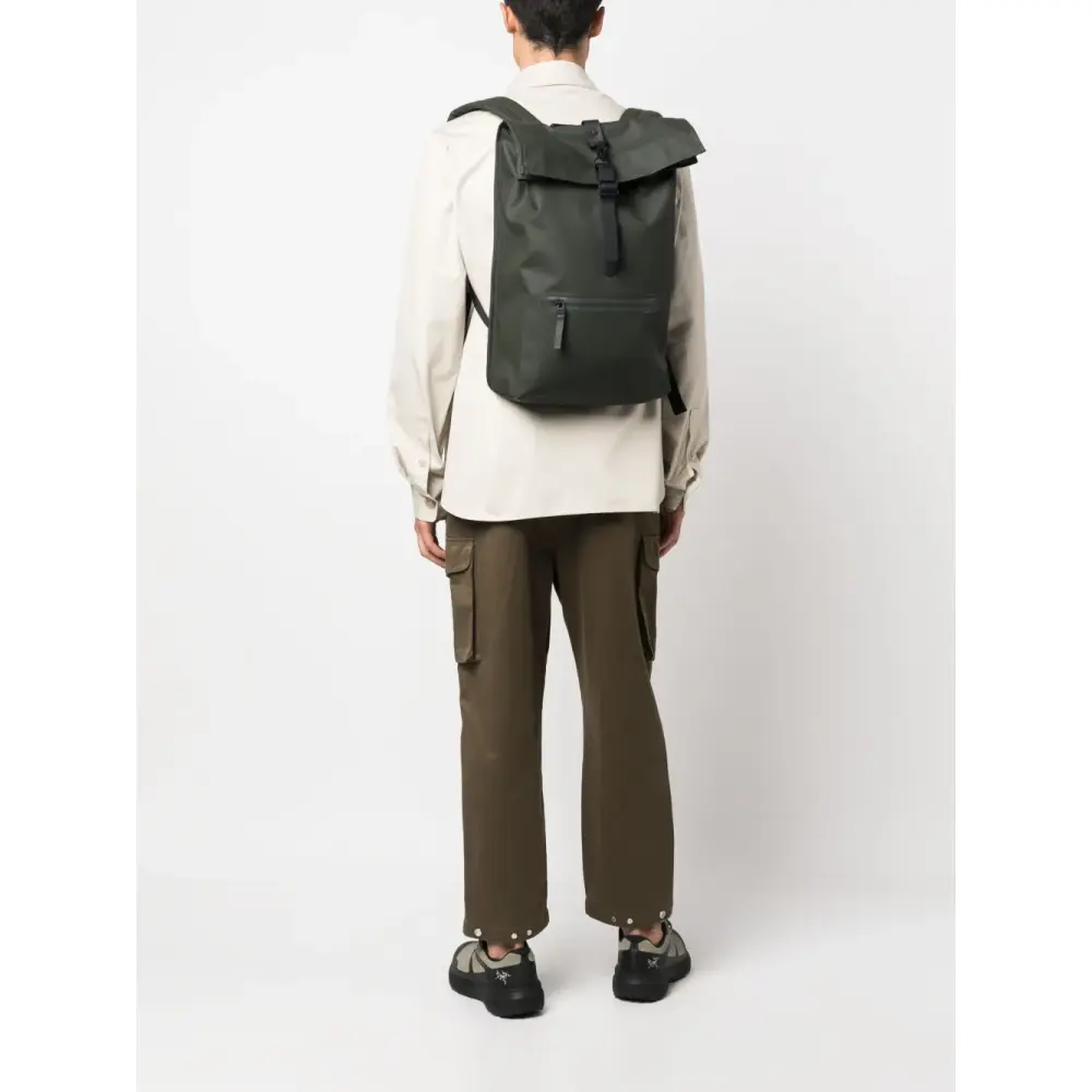 Темно-зеленый, черный, строчка в тон, конструкция роллтоп со скручивающимся верхом, застежка на пряжке, ручка с плоским верхом, два регулируемых ремня на плечо и основное отделение. Узнать больше о том, какие товары получают отметку «Ответственный выбор», можно из материала «Как мы оцениваем экологичность и этичность».