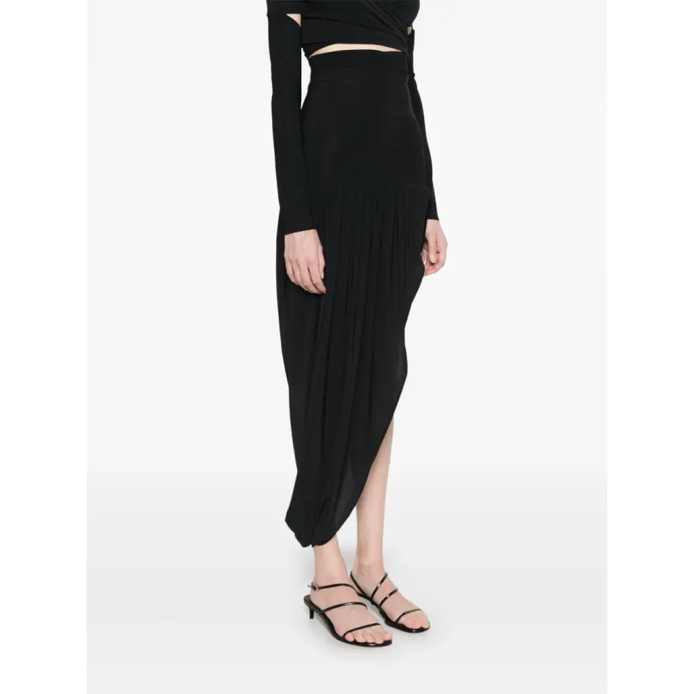 · эта юбка с асимметричным подолом должна сидеть чуть ниже линии талии