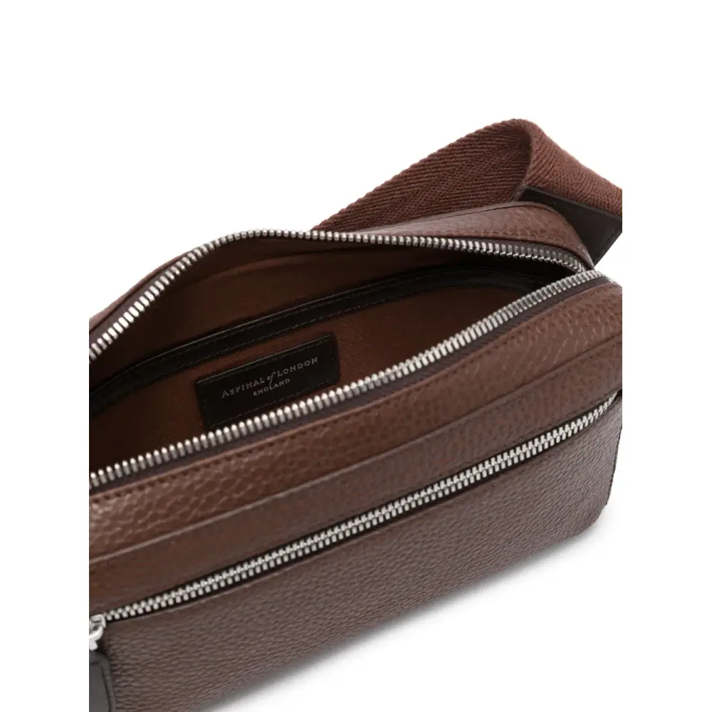 Кофейный, телячья кожа, зернистая текстура, тисненый логотип спереди, серебристая фурнитура, застежка на молнии сверху, регулируемый ремень на плечо, карман на молнии спереди, нашивка с логотипом внутри, внутренний прорезной карман и основное отделение.