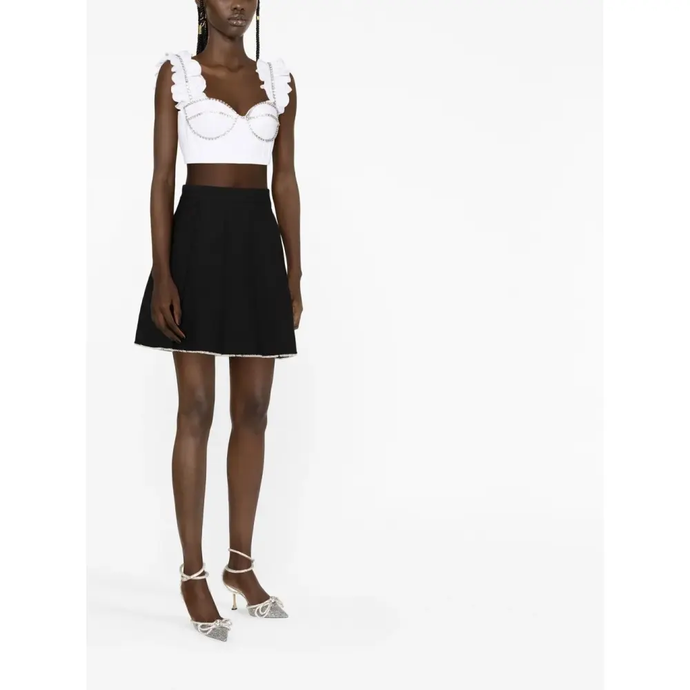 Белый, хлопок, декор из кристаллов, вставки с оборками, вырез в форме сердца, застежка на молнии сзади, без рукавов и укороченная длина.