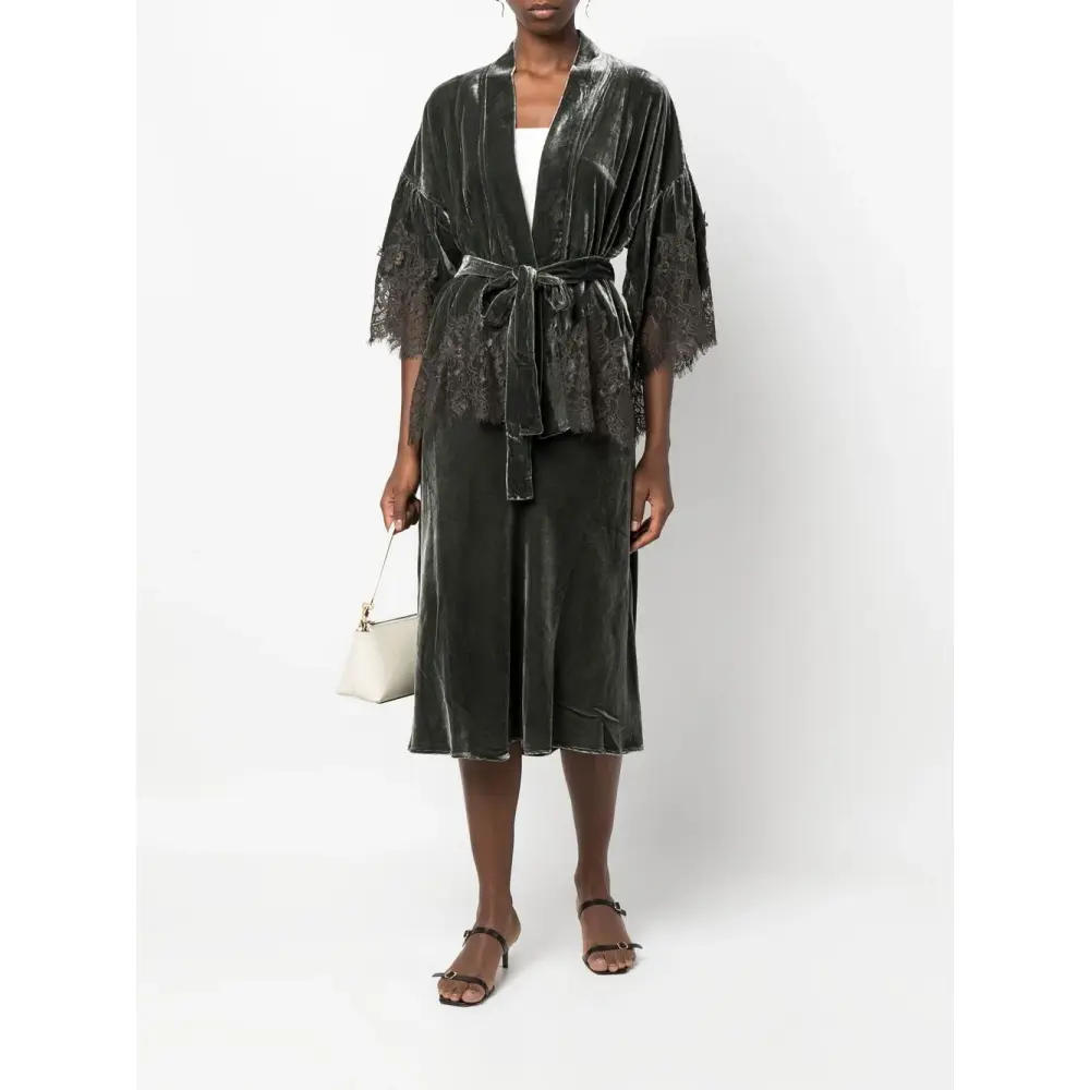 Темно-серый, бархат, завышенная талия, эластичный пояс и длина макси.